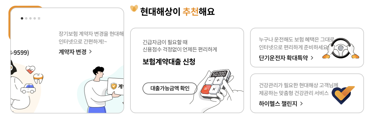 - 현대해상 홈페이지 또는 모바일 앱에 접속합니다.