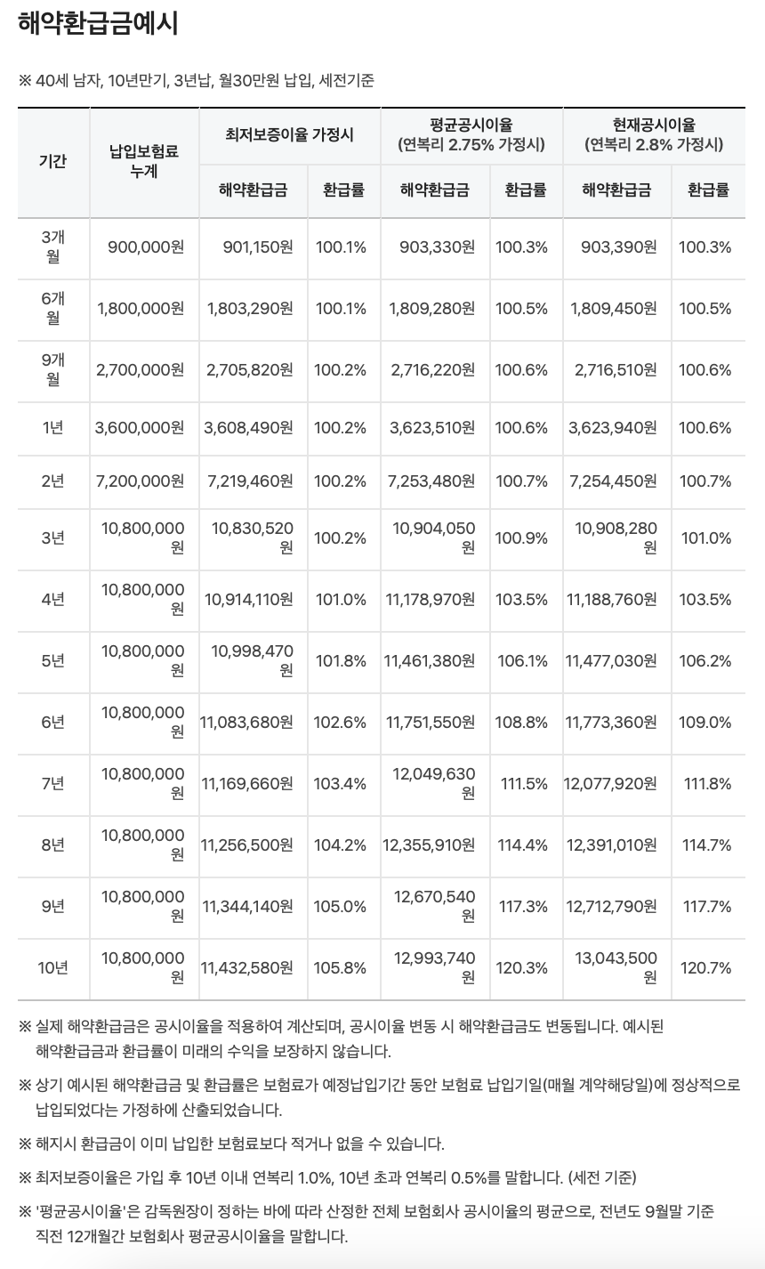 - 해약환급금 : 보험료 납입 중 해약 시 해약환급금을 지급합니다.