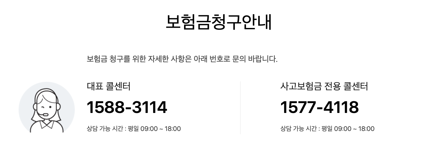 - 보험금 청구서에 잘못된 내용이 기재되어 있으면 보험금 지급이 지연될 수 있습니다.