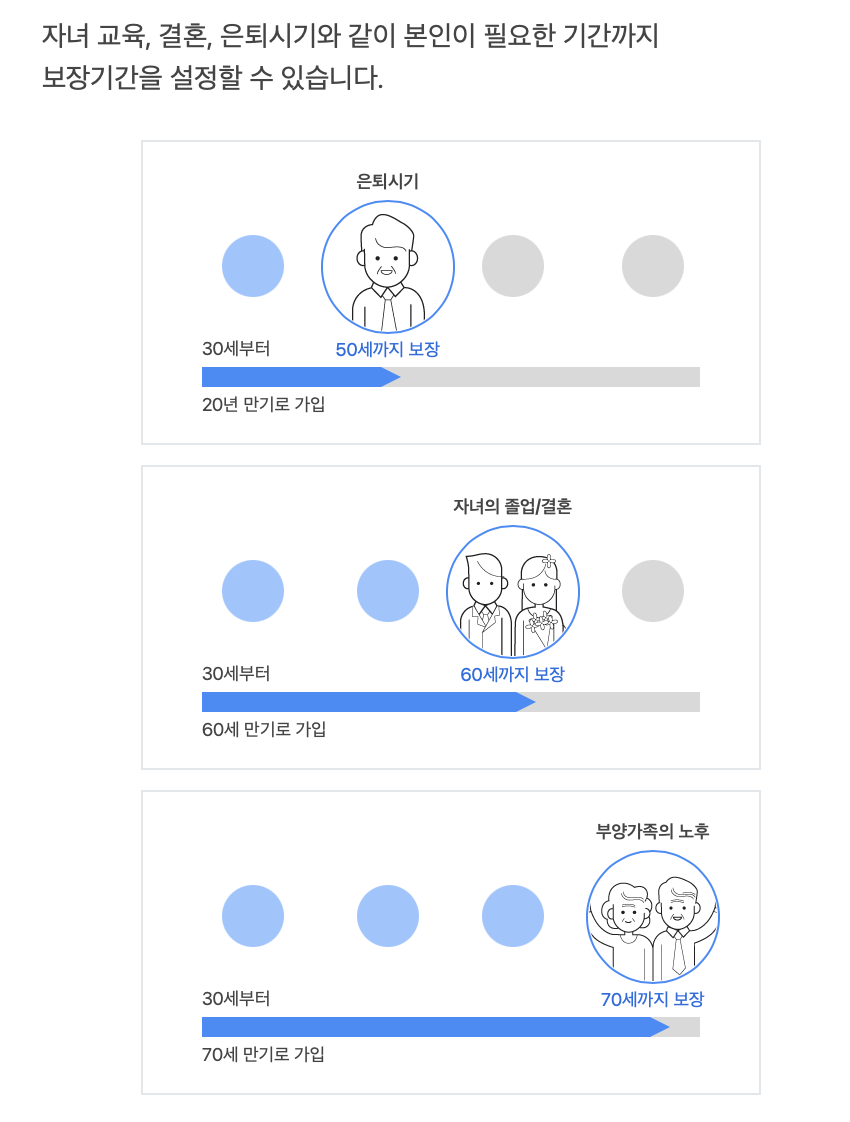 - 맞춤형 보장: 보험기간, 보험금액, 납입방법 등을 자유롭게 선택할 수 있습니다.