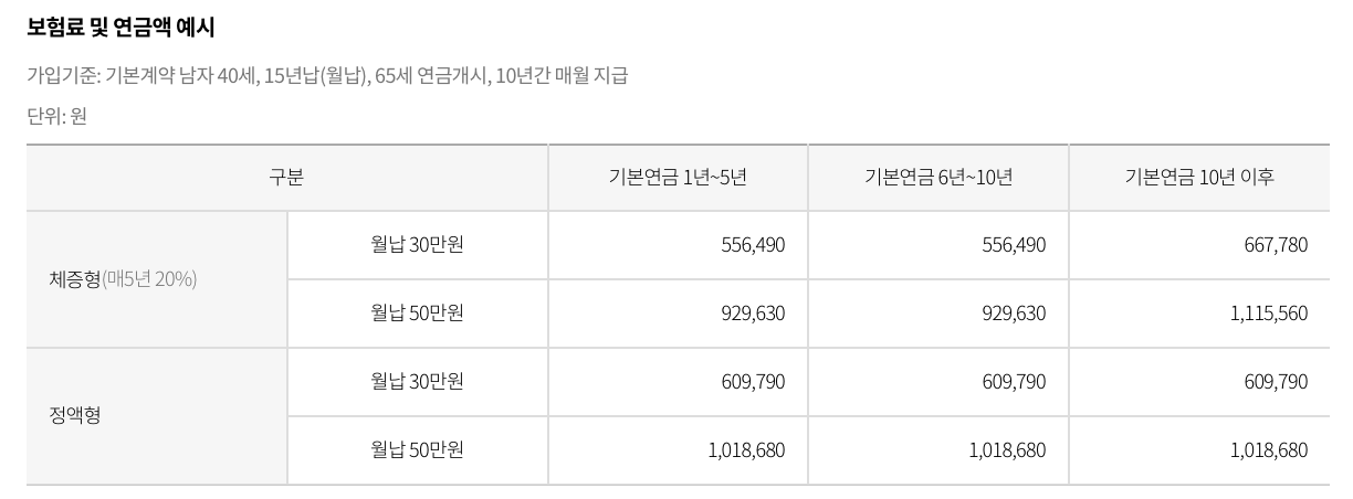 - 연금보험금: 매월 수령할 연금보험금