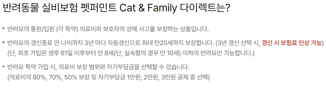 메리츠화재 다이렉트 고양이보험 보장내용 혜택 고양이보험 가입 시 주의사항 보험료 정리