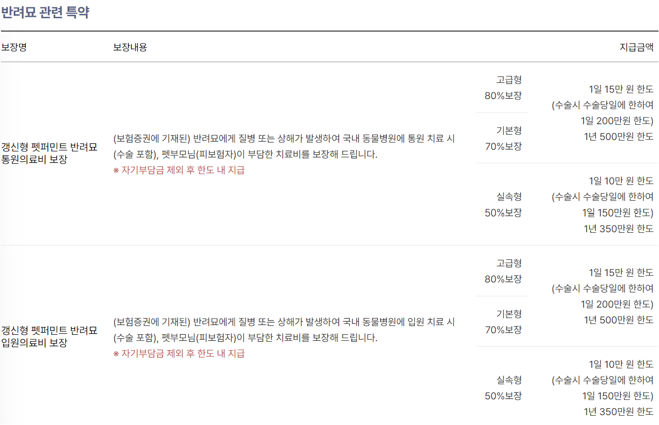 메리츠화재 다이렉트 고양이보험 보장내용