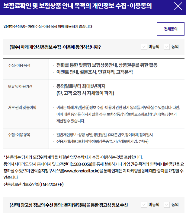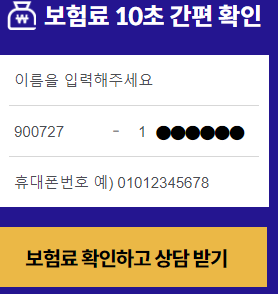 먼저 이름과 생년월일 휴대폰 번호를 입력 후 보험료 확인하고 상담받기를 클릭합니다.