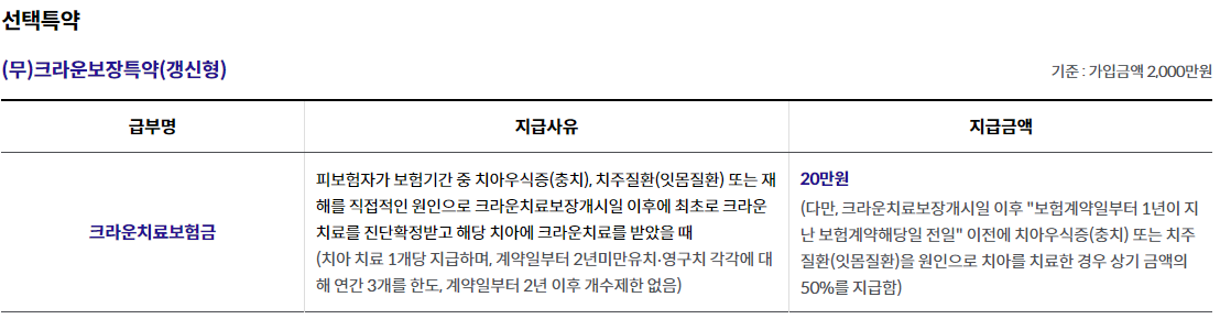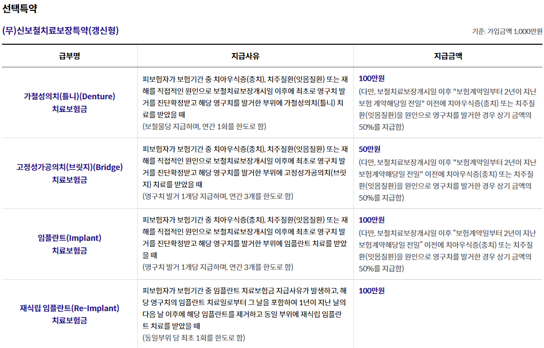 라이나 무배당 더건강한치아보험(갱신형) 보장내용
