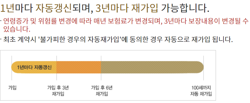 - 보장내용 변경주기는 보험가입 후 보장내용의 변경없이 자동으로 갱신되는 최대기간을 의미하며 보장내용 변경주기 종료 이후에는 회사가 정한 재가입절차에 따라 보험을 가입하여야합니다.
