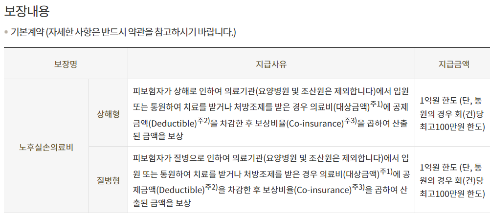KB 손해보험사의 노후실손의료비보장보험을 예시로 드리겠습니다.