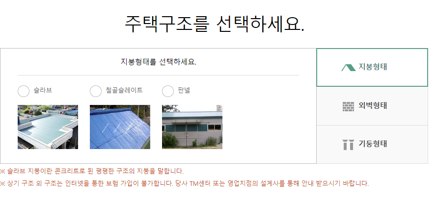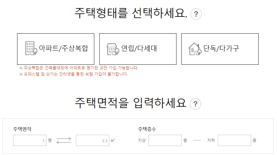 주택 형태, 면적 ,구조 등을 입력 후 보험에 가입할 건물 주소를 입력합니다.