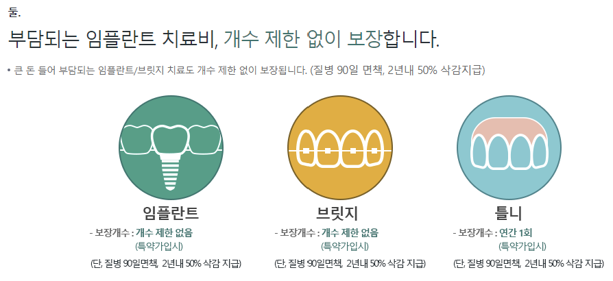 2. 면책기간과 감액기간 : 치아보험은 가입 후 일정 기간 동안 보장을 받을 수 없거나, 보장금액이 감액되는 경우가 있습니다. 예를 들어, 임플란트나 틀니와 같은 보철치료는 가입 후 2년 이상 경과해야 보장받을 수 있고, 보존치료나 신경치료는 가입 후 6개월 이상 경과해야 보장받을 수 있습니다. 또한, 보장금액도 가입 후 1년 이내에는 50%, 2년 이내에는 70%만 지급되는 경우가 있습니다. 따라서, 치아보험은 미리미리 가입하는 것이 좋습니다.