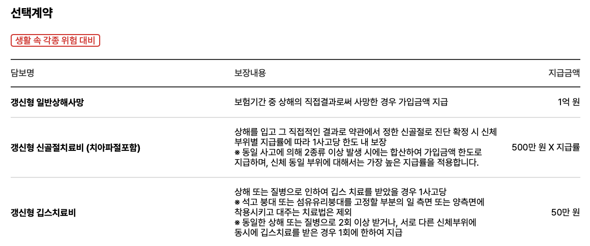 - 보장내용은 가입자의 필요에 따라 선택할 수 있습니다.