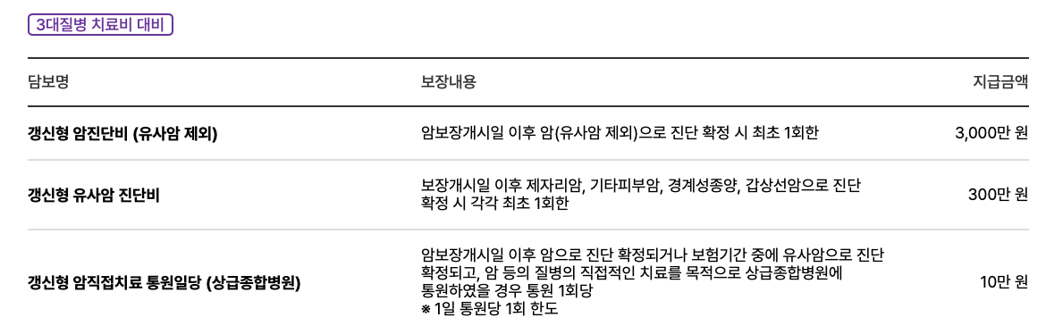 | 3대 질병 진단비의 감액기간 | 없음 | 1년 |