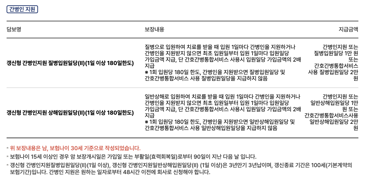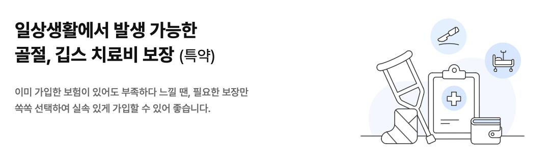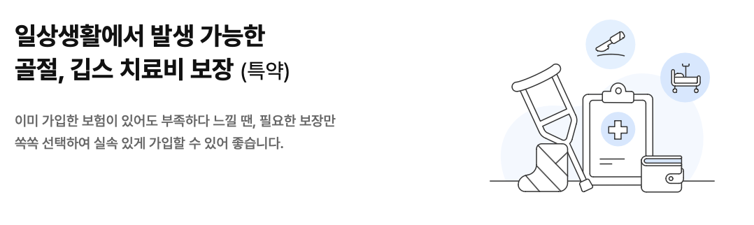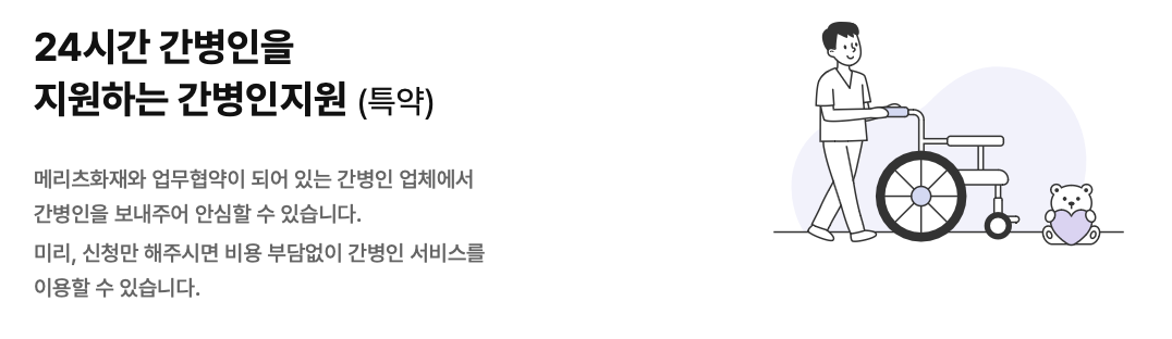 - 특약 가입으로 보장범위를 확대할 수 있습니다. 간병비, 상해치료비, 입원일당 등 다양한 특약을 가입하여 보장범위를 확대할 수 있습니다.