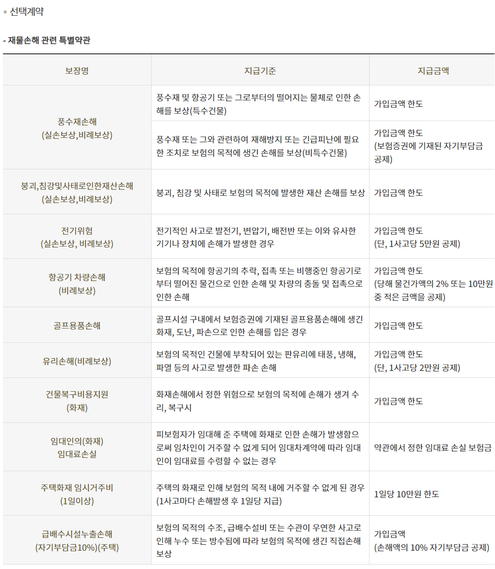 이 외에도 여러 선택계약 보장내용이 있습니다.