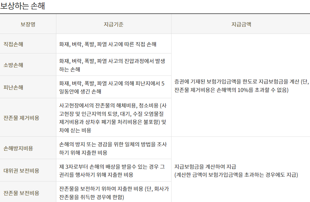 일반적으로 보장하는 내역은 다음과 같습니다.