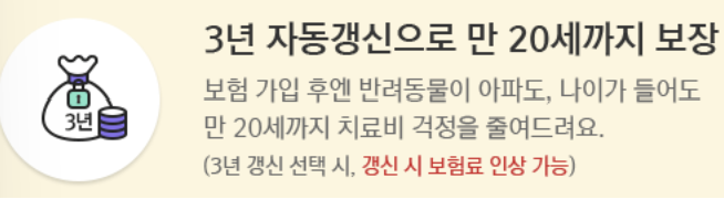 - 반려견이 질병, 또는 상해로 치료를 받던 중에 보험기간이 만료된 경우에는 만료일부터 180일 이내의 치료비를 보상하여 드립니다.
