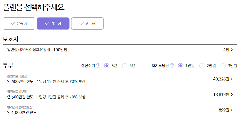 그럼 위와 같이 플랜에 따라 보험료가 달라지는데 한번 직접 조회해보시는 것이 가장 정확한 보험료를 조회해볼 수 있기 때문에 보험료 조회는 직접 해보시는 것이 가장 정확합니다.