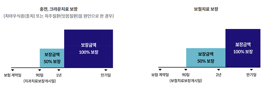 - 치과치료보장개시일은 계약일로부터 그 날을 포함하여 90일이 지난 날의 다음날로 합니다.