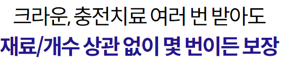 - 이미 충전치료, 크라운치료를 받은 치아에 대하여 새로운 치아우식증(충치), 치주질환(잇몸질환) 또는 재해를 직접적인 원인으로 충전치료, 크라운치료를 한 경우에도 해당 치료보험금을 지급합니다.