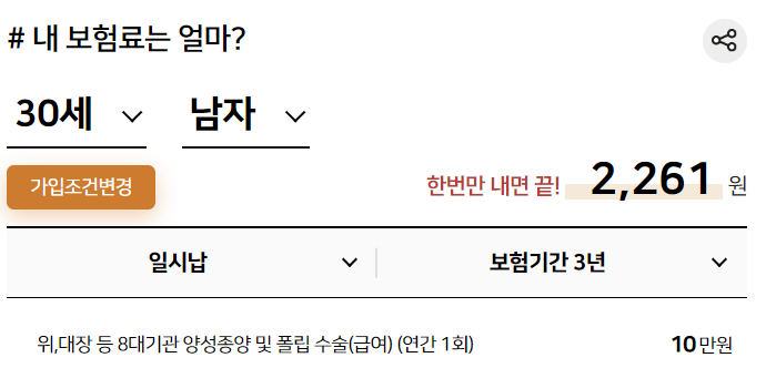 보험료는 사람마다 다르고 조건마다 다르므로 직접 조회해보시기 바랍니다.