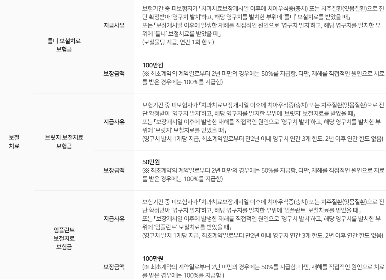 미래에셋생명 온라인 치아보험 보장내용