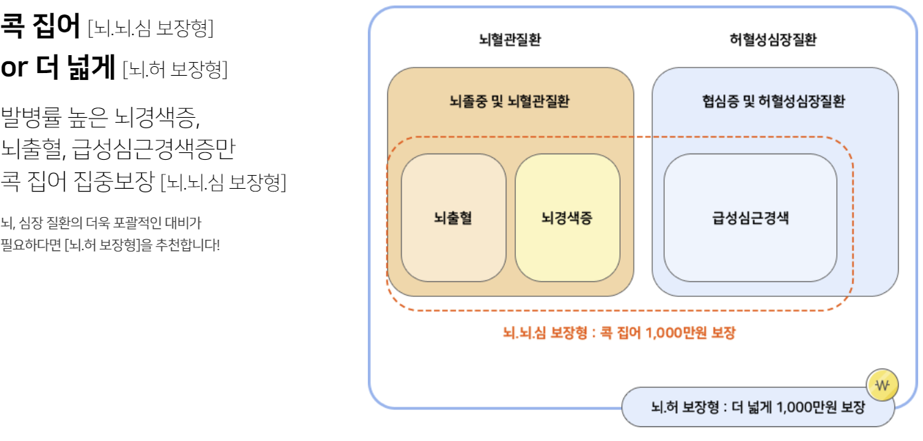 뇌심장질환 보험은 다양한 종류의 질병을 보장합니다. 뇌혈관질환, 허혈성 심장질환, 부정맥, 심부전 등이 대표적인 예입니다. 하지만 모든 보험 상품이 같은 범위를 보장하는 것은 아닙니다. 예를 들어, 뇌혈관질환 보험은 뇌출혈, 뇌졸중, 뇌경색 등을 보장하지만, 뇌출혈 보험은 뇌출혈만 보장합니다. 허혈성 심장질환 보험은 급성심근경색, 협심증 등을 보장하지만, 급성심근경색 보험은 급성심근경색만 보장합니다. 따라서 가입할 때에는 자신의 건강 상태와 위험 요인을 고려하여 가능한 넓은 범위의 보험을 선택하는 것이 좋습니다.