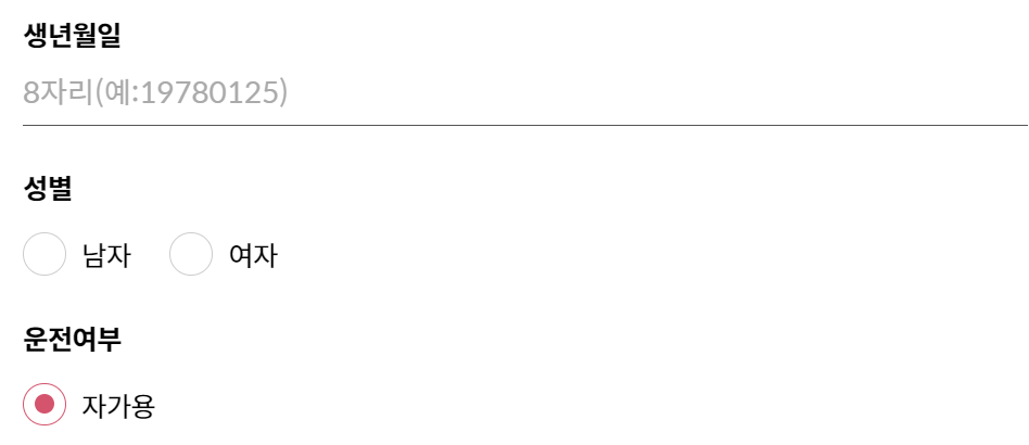우선 생년월일, 성별, 운전여부 입력 후 보험료 계산하기를 클릭합니다.