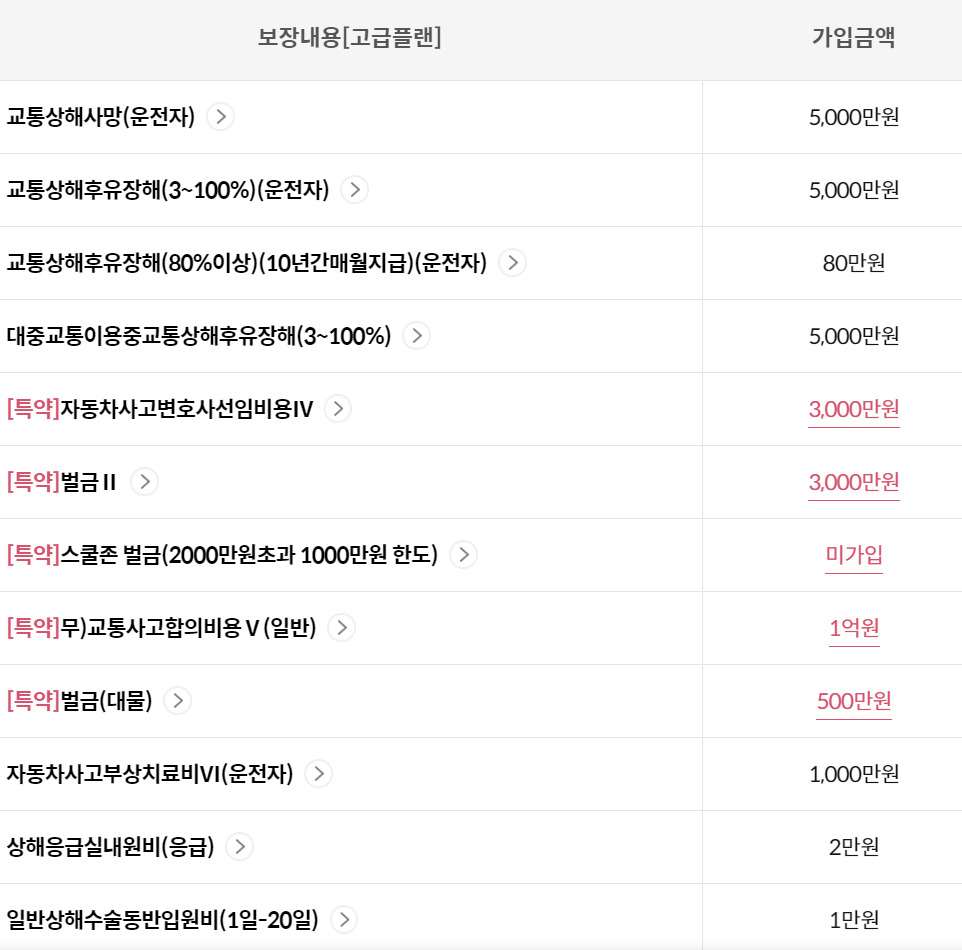 보장내용은 기본플랜이냐, 고급플랜이냐에 따라 달라지며 보장내용은 비슷합니다.