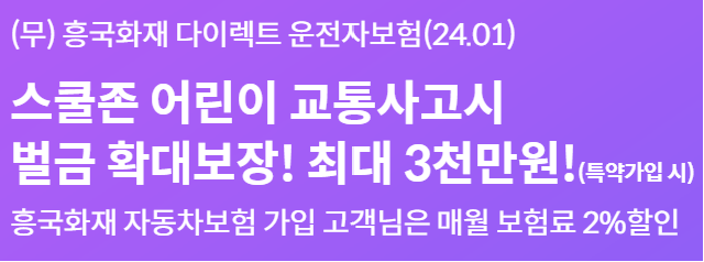 흥국화재 다이렉트 운전자보험 보험료 조회방법 혜택 보장내용 총 정리