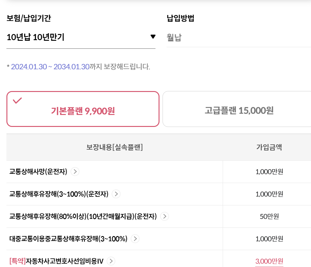 기본 플랜과 고급 플랜의 차이는 보장내용 및 보장금액에 따라 조금씩 차이가 있으며 보험료 조회는 직접 해보시는 것이 가장 좋습니다.