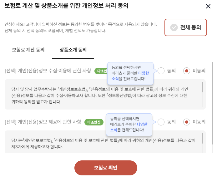 상품소개를 위한 개인정보 처리 동의는 하지 않으셔도 무방합니다.