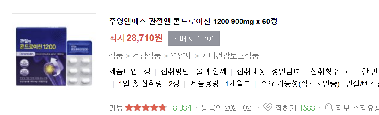 이상으로 관절엔 콘드로이친 1200mg 정보에 대해 알아보았으며 아래는 다른 정보 함께 두었으니 참고 하시길 바랍니다.