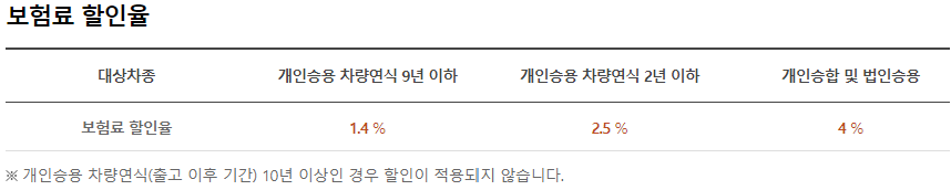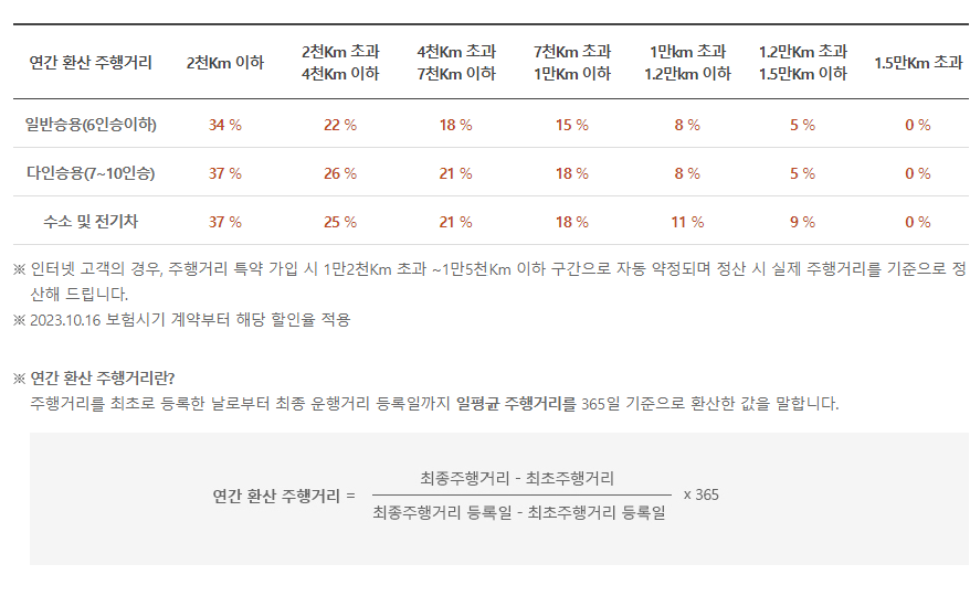 - 특약할인율은 긴급출동서비스와 특약보험료를 제외한 보험료에 적용됩니다.