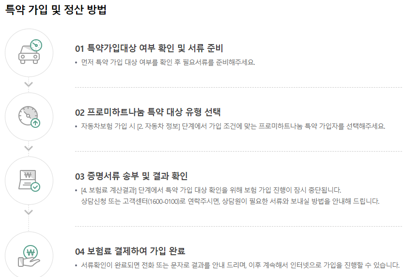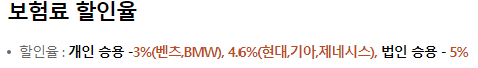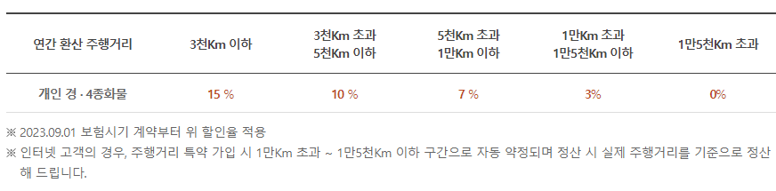 - 특약 할인율은 긴급출동서비스와 특약 보험료를 제외한 보험료에 적용됩니다.