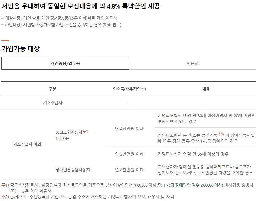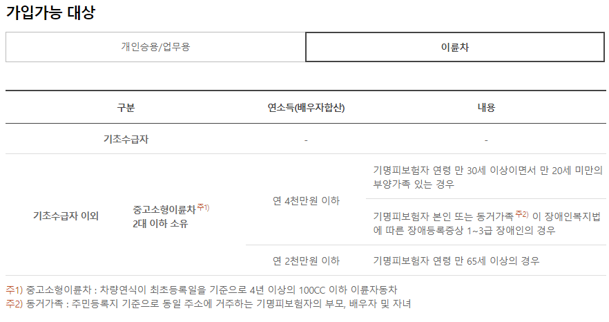- 보험기간이 1년인 경우에 한하여 특약 가입이 가능합니다. (단, 잔여보험이 3개월 이상인 경우에만 보험기간 중도에 가입 가능)