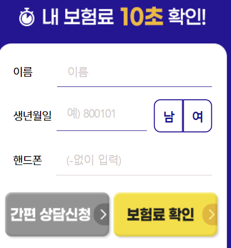 이름, 생년월일, 휴대폰번호, 성별 입력 후 보험료 확인 클릭합니다.