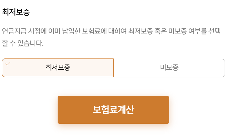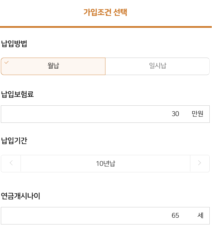 조회방법은 간단합니다. 납입방법, 납입보험료, 납입기간, 연금개시나이를 입력합니다.
