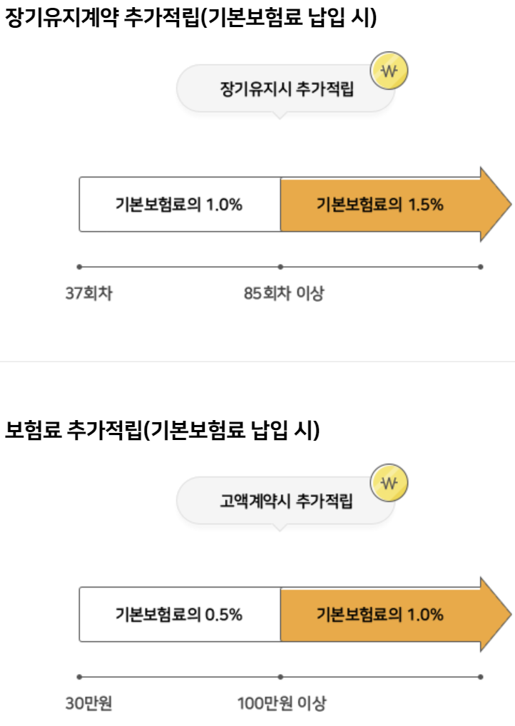 5. 변액연금보험은 비과세 혜택이 있습니다. 변액연금보험은 계약 후 10년 이상 유지하고, 5년 이상 납입 (월납 150만 원 이하 적립식)하면 이자소득의 비과세가 가능합니다. 일반 펀드와 달리 원금 회복 후에도 최저보증이율 (0.75~5.0%)로 적립한 예정 적립금을 보장하여 증시의 등락과 상관없이 안정적인 수익을 제공합니다.