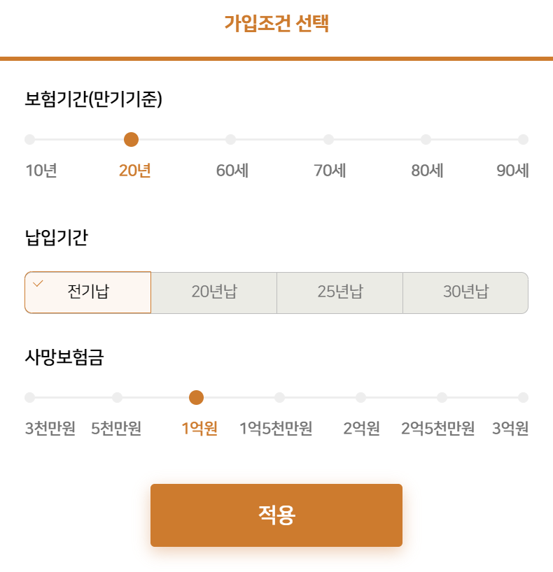 가입조건 선택 후 적용을 누르면 다음과 같이 보험료가 조회됩니다.