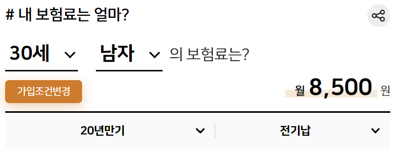 보험료는 성별, 생년월일 및 가입 조건 등에 따라 달라지므로 직접 조회해보면서 알아보시기 바랍니다.