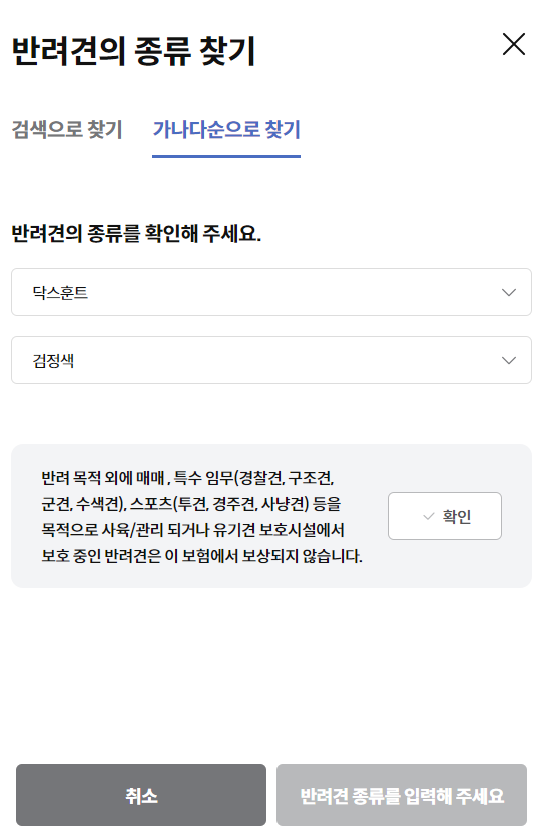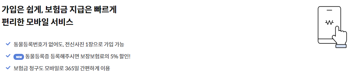 - 반려견의 종류에 따라 보장 범위나 보험료가 다를 수 있습니다.