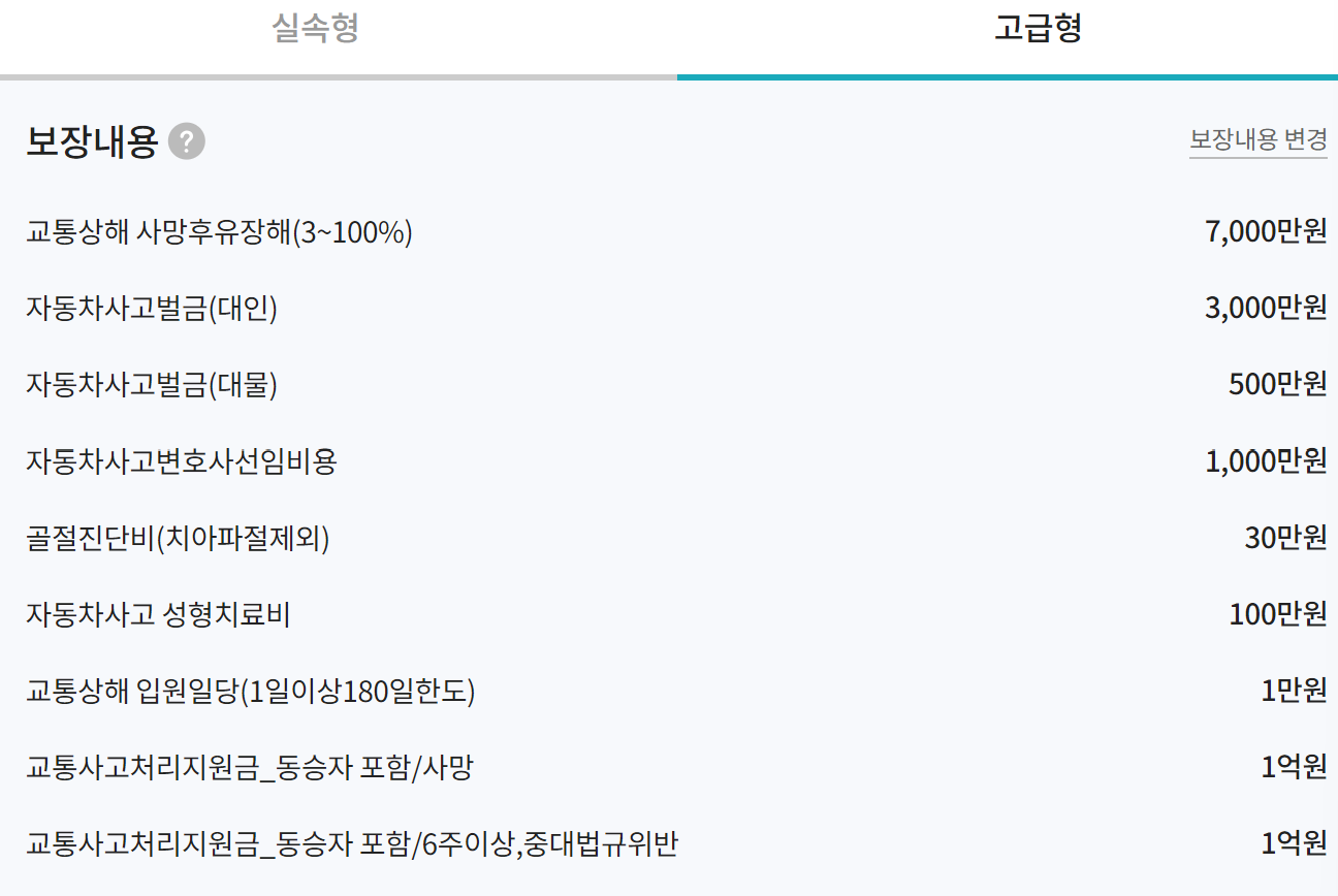 - 벌금: 운전자가 형사적 책임이 발생하는 사고를 내었을 때, 법원에서 부과하는 벌금을 지원받는 금액입니다.