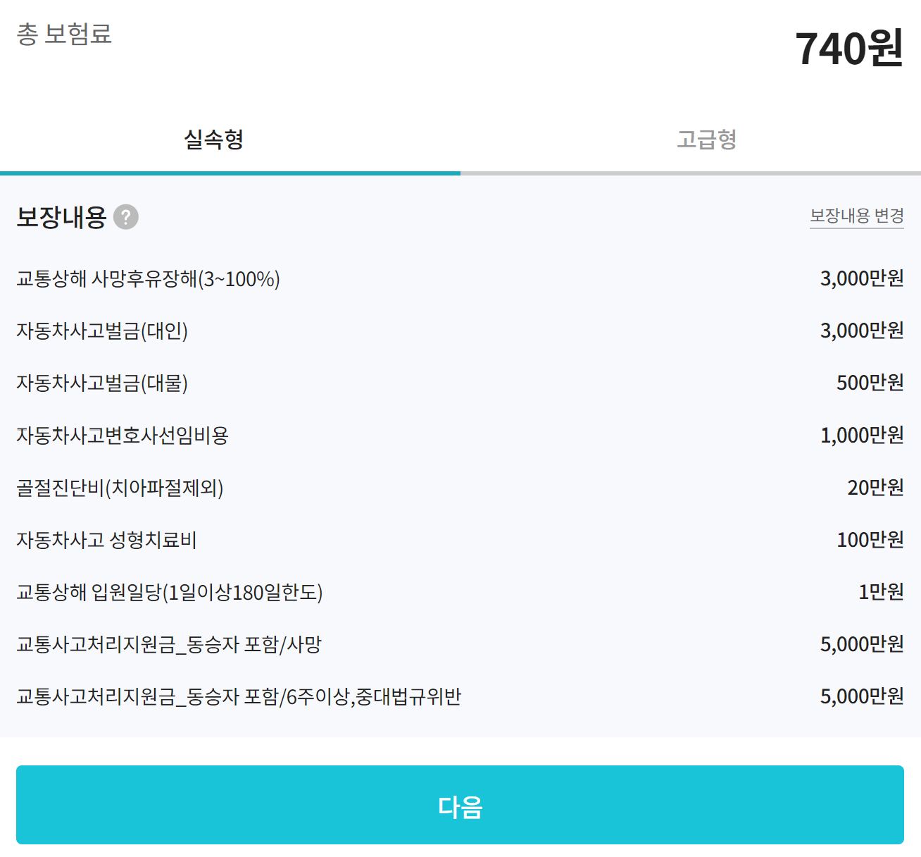 다음을 누르면 바로 아래와 같이 보험료가 계산됩니다.