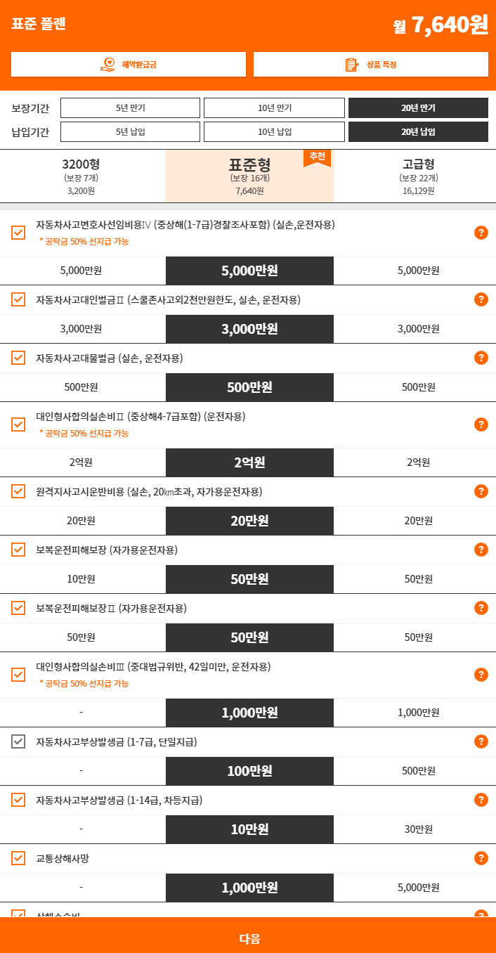 한화손해보험 다이렉트 운전자보험 보장내용