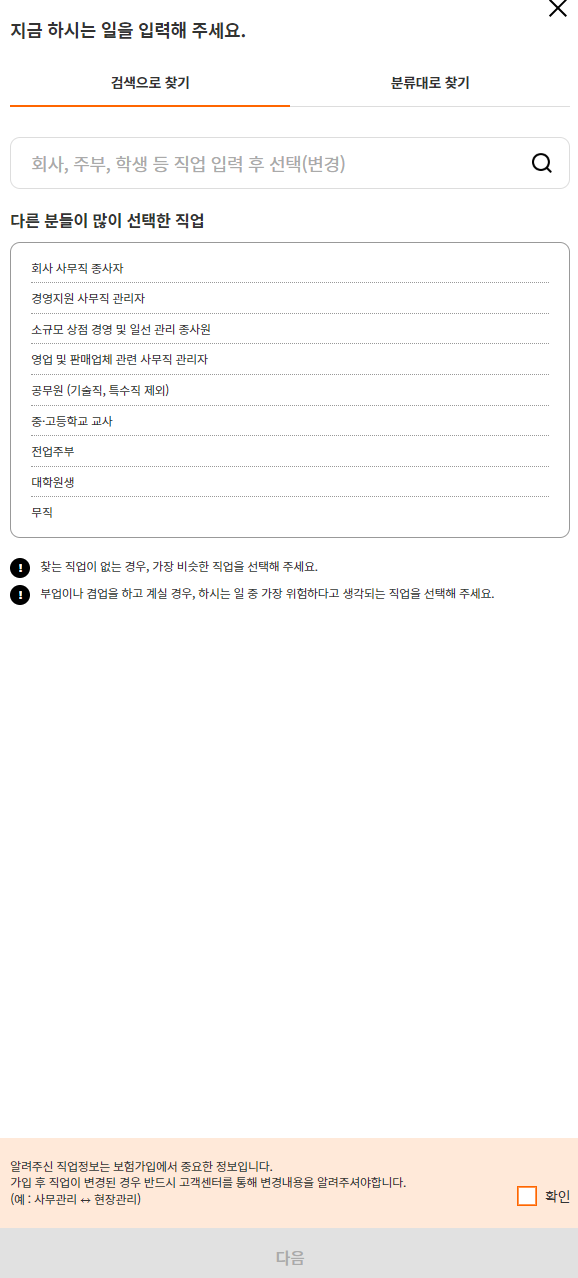 직업정보를 입력하고 다음을 누르면 다음과 같이 보험료가 계산됩니다.