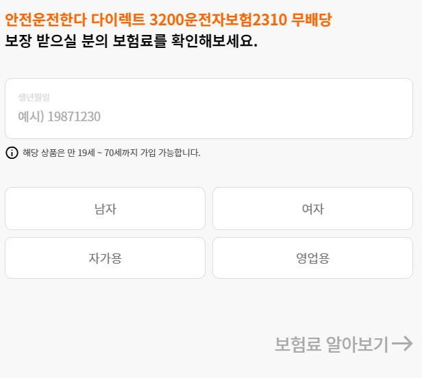 생년월일 성별, 자가용, 영업용 선택 후 보험료 알아보기를 클릭합니다.