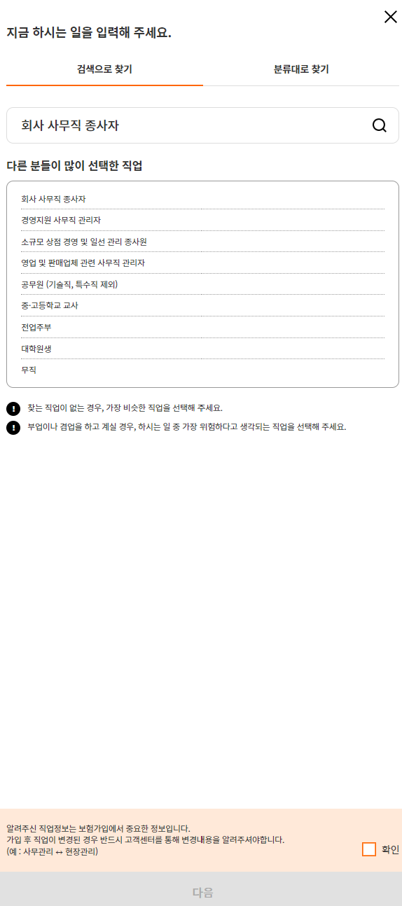 직업정보를 입력합니다. 그럼 바로 다음과 같이 보험료가 계산됩니다.