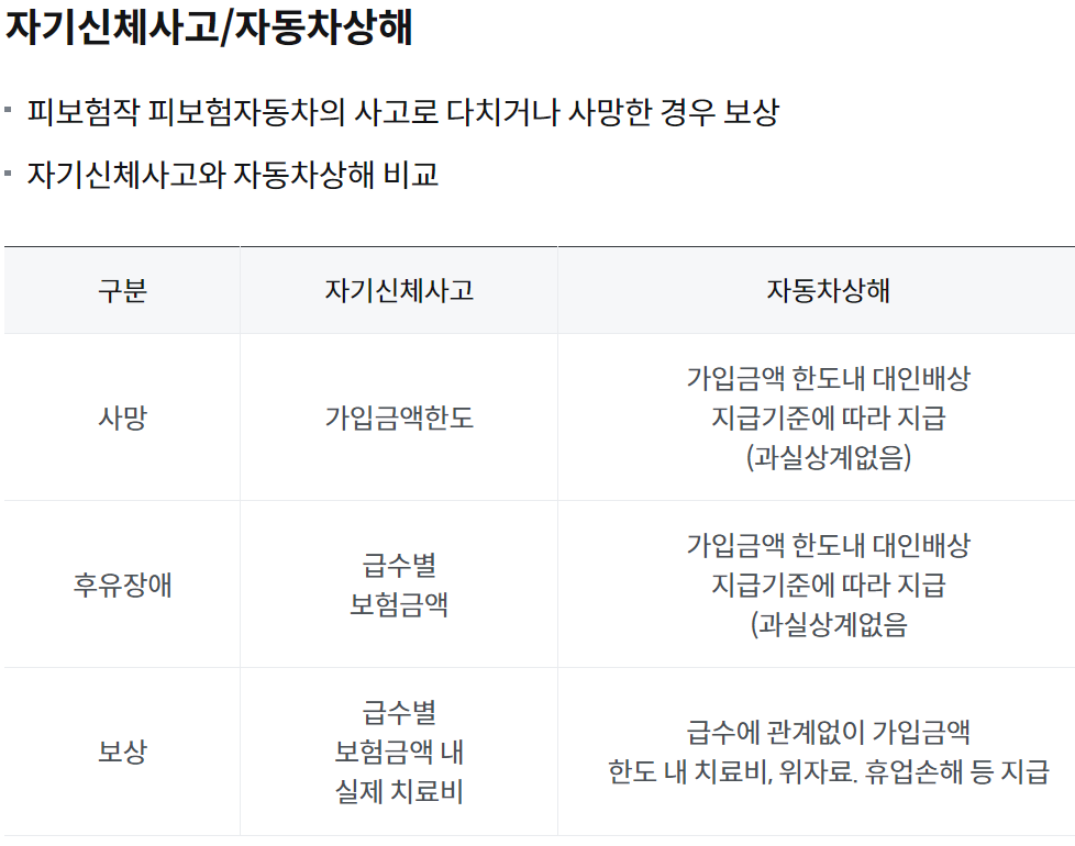 자동차보험과 운전자보험의 차이점