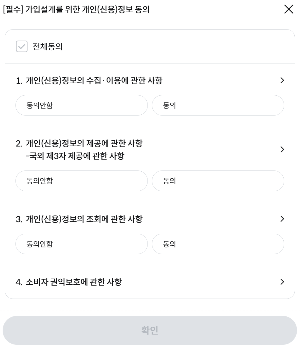 보험료 조회를 위한 개인정보 이용에 동의 후 확인을 누릅니다.