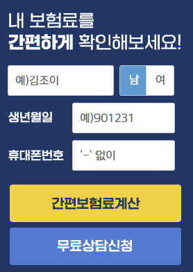 보험료 조회방법은 간단합니다. 우선 이름 , 성별, 생년월일, 휴대폰 번호 입력 후 간편 보험료 계산을 클릭합니다.