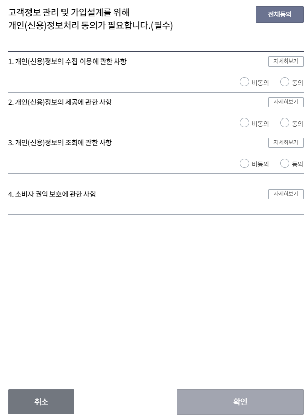 계산을 위한 개인정보 이용에 동의를 합니다.